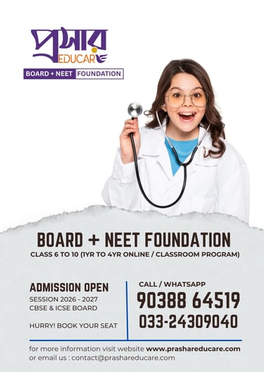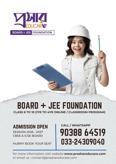 First Time in India! Prashar Educare introduces Foundation Courses for Engineering & Medical Entrance Exams, specially designed for students from Class 6 onwards. Our integrated learning program bridges school academics with competitive exam preparation, offering a strong conceptual base aligned with Board, JEE, and NEET syllabi. Build your foundation early with expert guidance, research-based study material, and a structured path to success in India’s toughest exams.